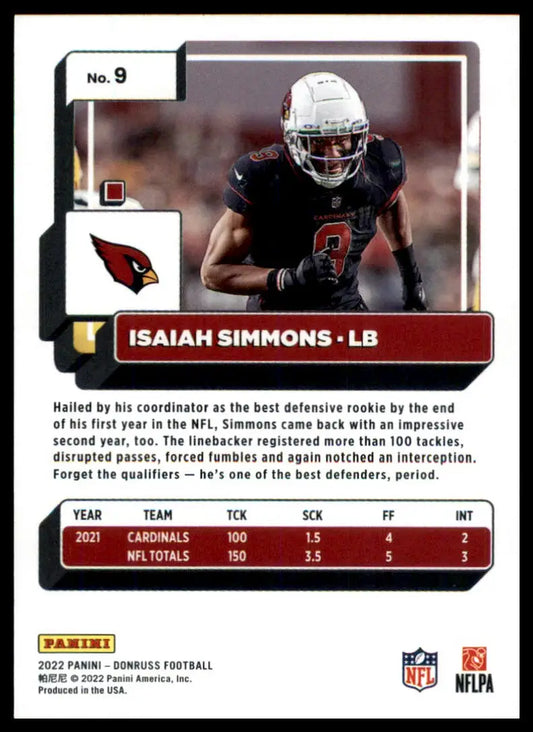 Isaiah Simmons 2022 Donruss #9 Arizona Cardinals