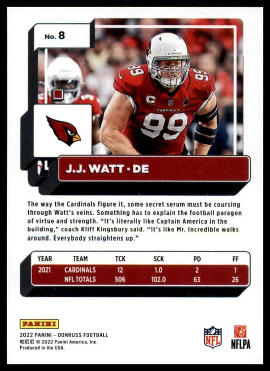 J.J. Watt 2022 Donruss #8 Arizona Cardinals