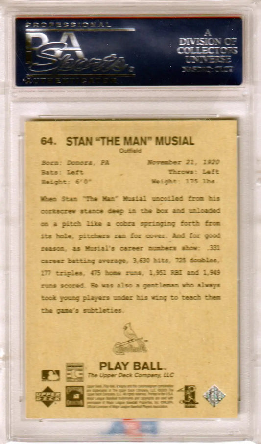 STAN MUSIAL 2003 Upper Deck Play Ball #64 PSA 10 GEM MINT - CARDINALS Pop 7