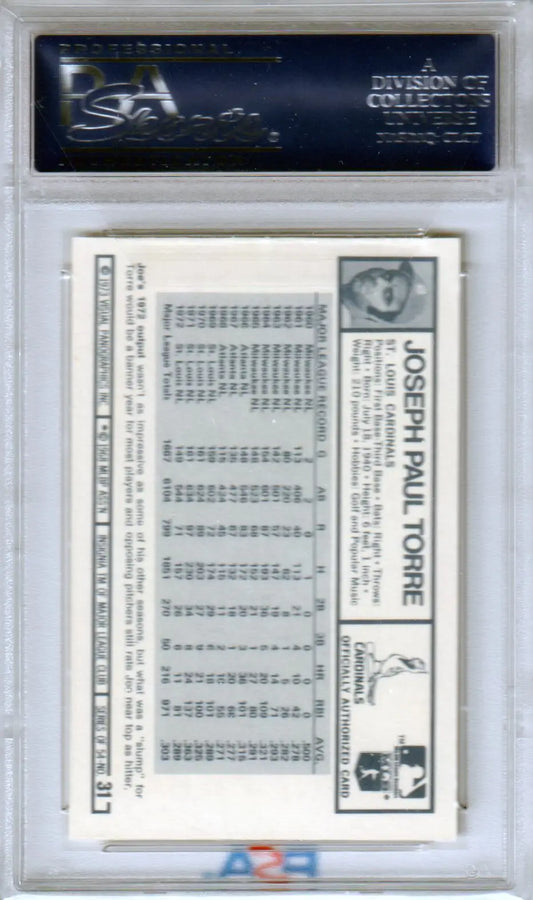 JOE TOREE 1973 Kellogg's Super Stars #31 PSA 9 Mint - CARDINALS