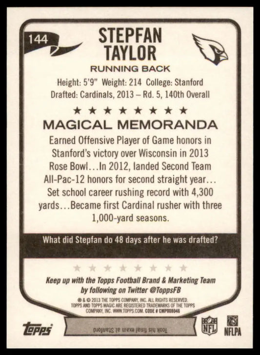 Stepfan Taylor Rookie 2013 Topps Magic #144 Arizona Cardinals