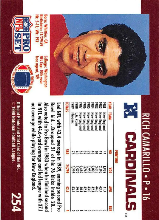 1990 Pro Set #254 Rich Camarillo NM-MT Phoenix Cardinals Football Card