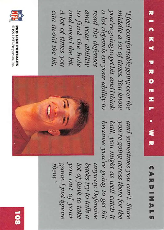 1991 Pro Line Portraits #108 Ricky Proehl EX-NM Phoenix Cardinals Football Card