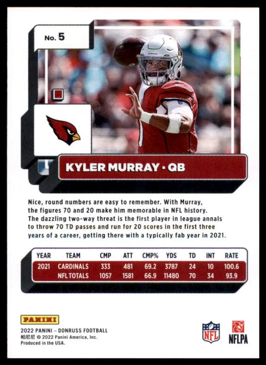 Kyler Murray 2022 Donruss #5 Arizona Cardinals