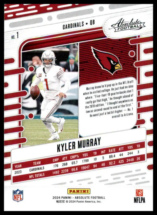 Kyler Murray 2024 Panini Absolute #1 Arizona Cardinals