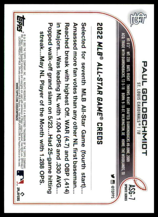 Paul Goldschmidt 2022 Topps Update 2022 MLB All-Star Game #ASG-7 STL Cardinals