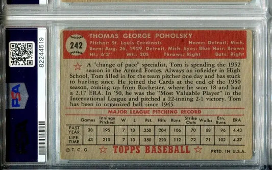 Signed 1952 Topps #242 Tom Poholsky PSA 3 DNA MINT 9 Auto Cardinals