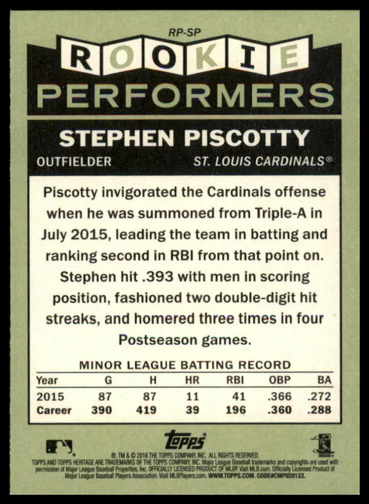 Stephen Piscotty 2016 Topps Heritage Rookie Performers #RP-SP STL Cardinals
