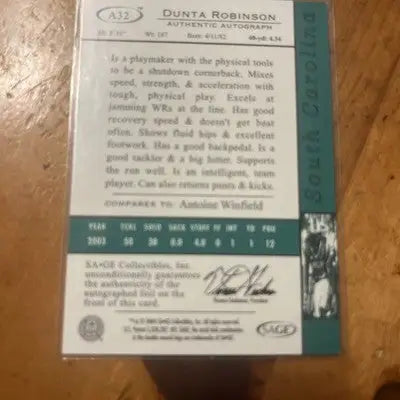 2004 Sage Hit Emerald Autograph Dunta Robinson South Carolina Texans Falcons