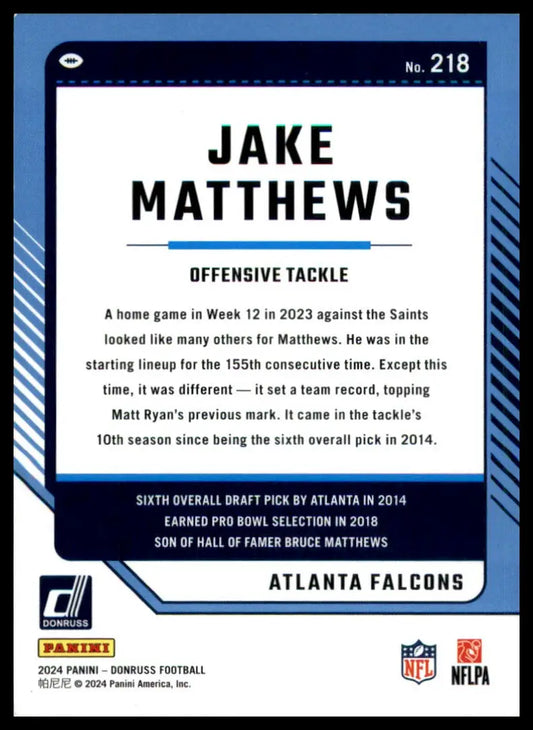 Jake Matthews 2024 Donruss #218 Atlanta Falcons