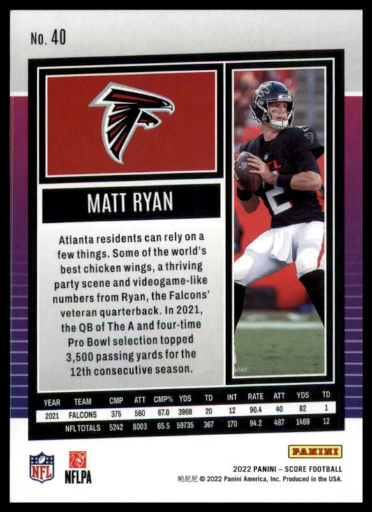 Matt Ryan 2022 Score #40 Atlanta Falcons