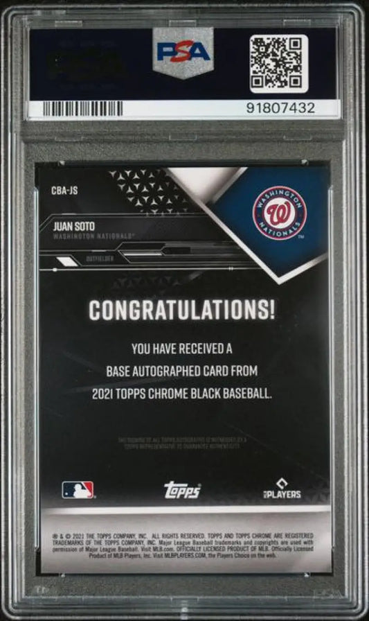2021 Topps Chrome Black #CBA-JS Juan Soto PSA 10 GEM MINT Auto Washington Nationals Baseball Card