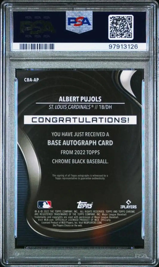 2022 Topps Chrome Black Refractor Orange #CBA-AP Albert Pujols PSA 10 GEM MINT Auto 18/25 St. Louis Cardinals Baseball Card