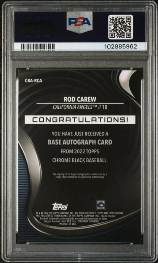 2022 Topps Chrome Black Refractor Orange #CBA-RCA Rod Carew PSA 10 GEM MINT Auto 4/25 California Angels Baseball Card