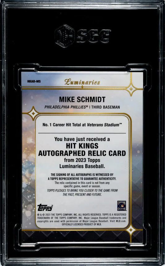 2023 Topps Luminaries #HKAR-MS Mike Schmidt SGC 9.5 MINT+ MEM Auto 6/15 Philadelphia Phillies Baseball Card