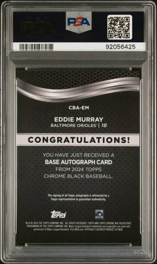 2024 Topps Chrome Black Refractor Gold Mini-Diamonds #CBA-EM Eddie Murray PSA 9 MINT Auto 26/50 Baltimore Orioles Baseball Ca