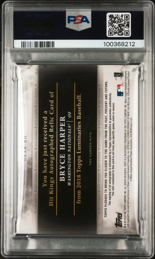 2018 Topps Luminaries Hit Kings Relics Red #HKAR-BH Bryce Harper PSA 10 GEM MINT MEM Auto 1/10 Washington Nationals Baseball Card