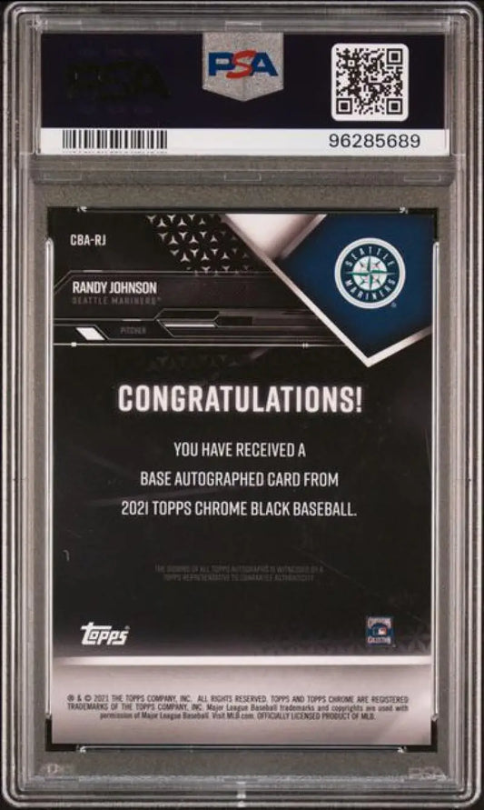 2021 Topps Chrome Black Refractor Red #CBA-RJ Randy Johnson PSA 10 GEM MINT Auto 2/5 Seattle Mariners Baseball Card