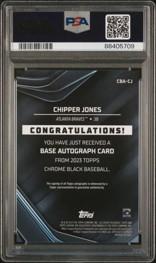2023 Topps Chrome Black #CBA-CJ Chipper Jones PSA 10 GEM MINT Auto Atlanta Braves Baseball Card