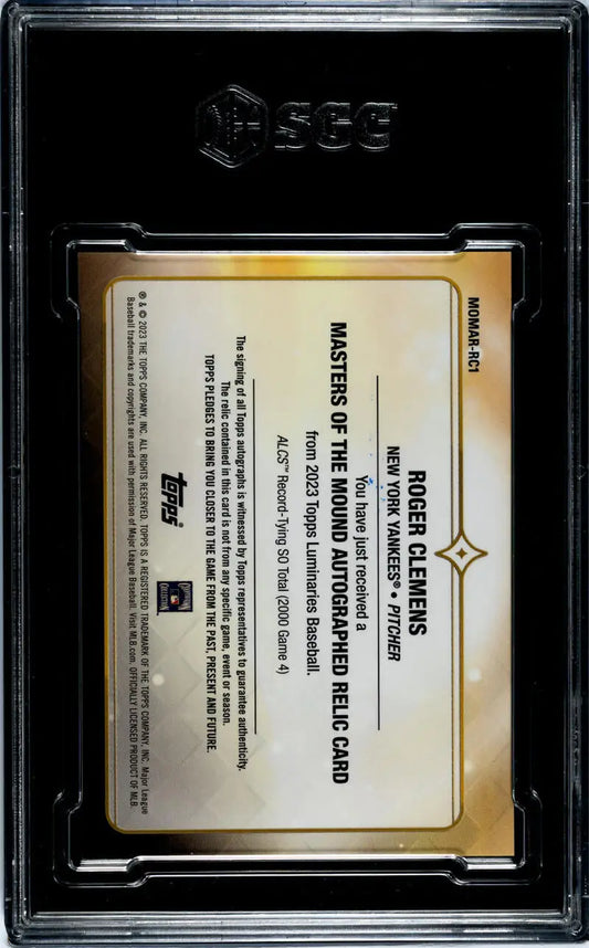 2023 Topps Luminaries #MOMAR-RC1 Roger Clemens SGC 10 Gem MEM Auto 3/10 New York Yankees Baseball Card