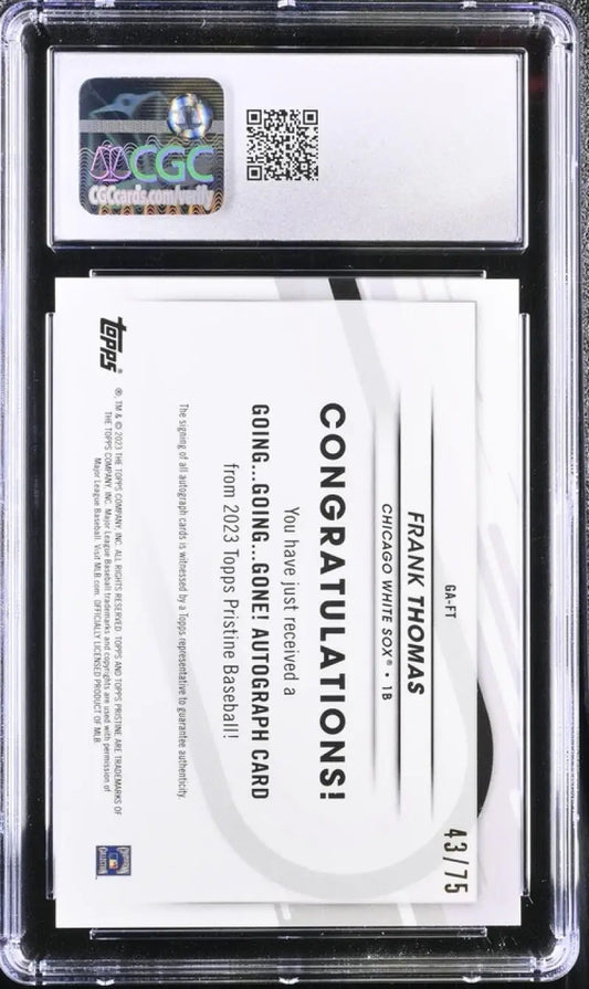 2023 Topps Pristine #GAFT Frank Thomas CGC 10 Gem Auto 43/75 Chicago White Sox Baseball Card