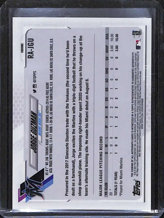 2021 Topps Chrome #RA-JGU Jorge Guzman Rookie Auto NM-MT Baseball Card