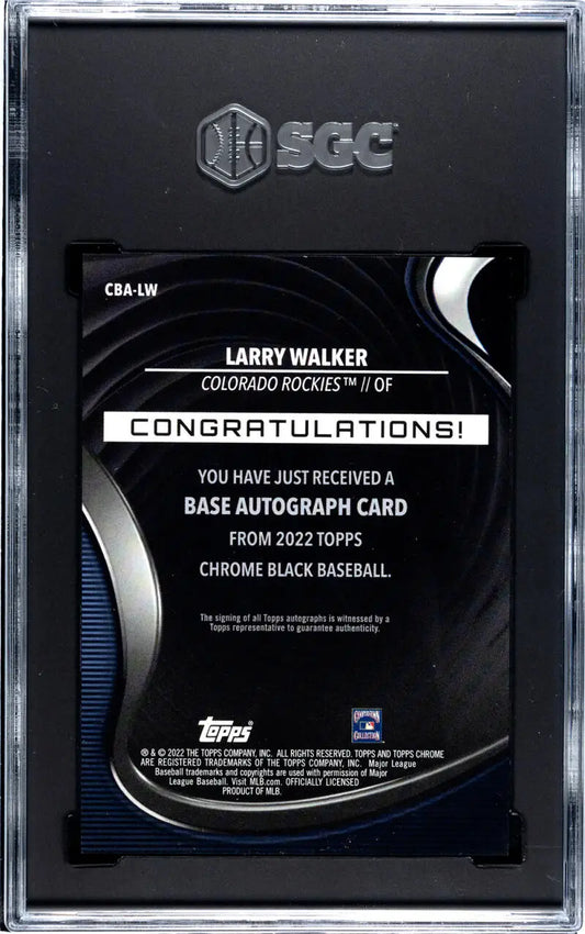 2022 Topps Chrome Black Refractor Gold #CBA-LW Larry Walker SGC 10 Gem Auto 26/50 Colorado Rockies Baseball Card