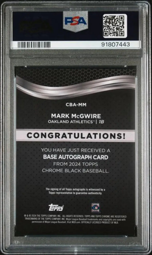 2024 Topps Chrome Black #CBA-MM Mark McGwire PSA 10 GEM MINT Auto Oakland Athletics Baseball Card
