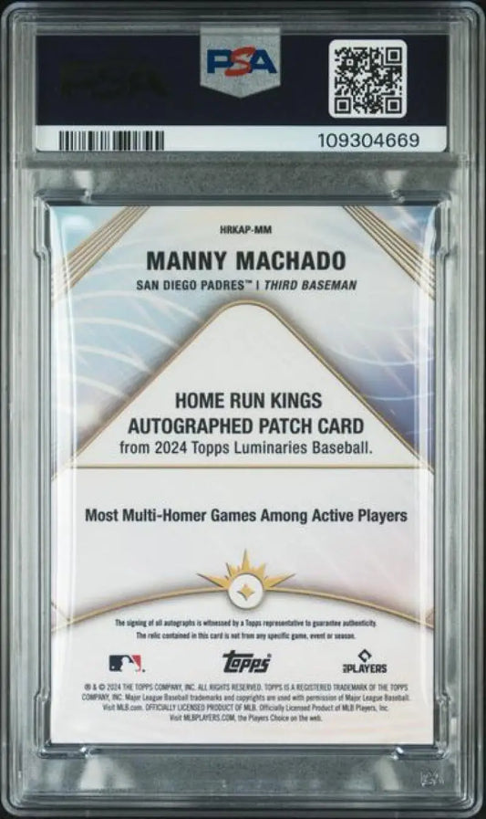 2024 Topps Luminaries #HRKAP-MM Manny Machado PSA 7 NM MEM Auto 1/15 San Diego Padres Baseball Card