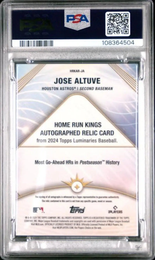 2024 Topps Luminaries #HRKARJA Jose Altuve PSA 10 GEM MINT MEM Auto 6/25 Houston Astros Baseball Card