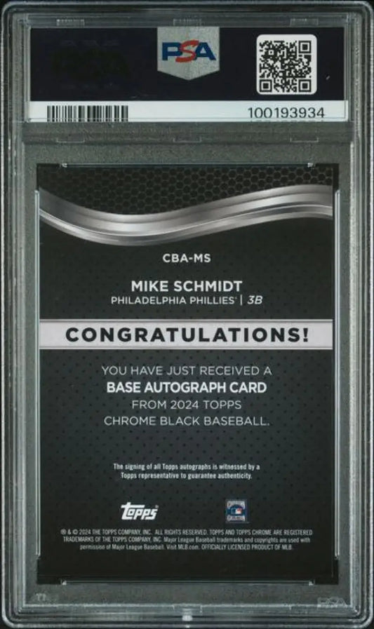 2024 Topps Chrome Black #CBA-MS Mike Schmidt PSA 10 GEM MINT Auto Philadelphia Phillies Baseball Card