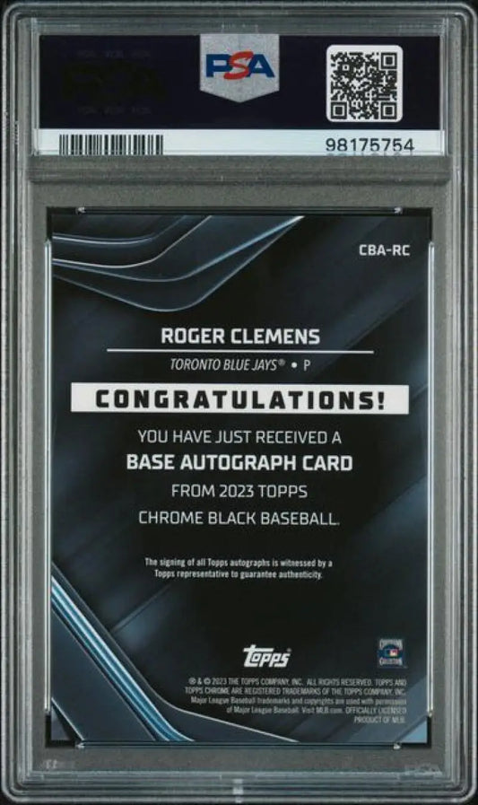 2023 Topps Chrome Black Refractor Gold #CBA-RC Roger Clemens PSA 9 MINT Auto 43/50 Toronto Blue Jays Baseball Card