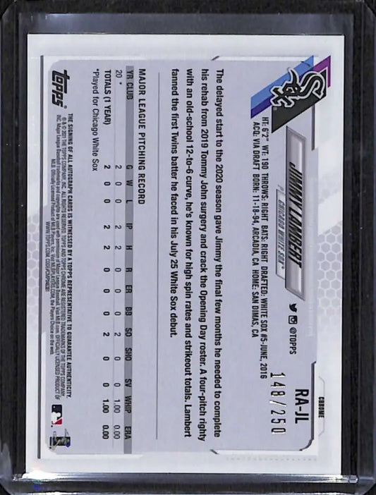 2021 Topps Chrome #RA-JL Jimmy Lambert Rookie Auto Purple Refractor #/250 NM-MT Baseball Card
