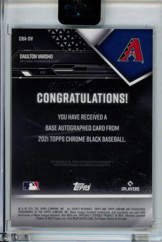 2021 Topps Chrome Black Autographs #CBA-DV Daulton Varsho NM-MT Auto Arizona Diamondbacks Baseball Card