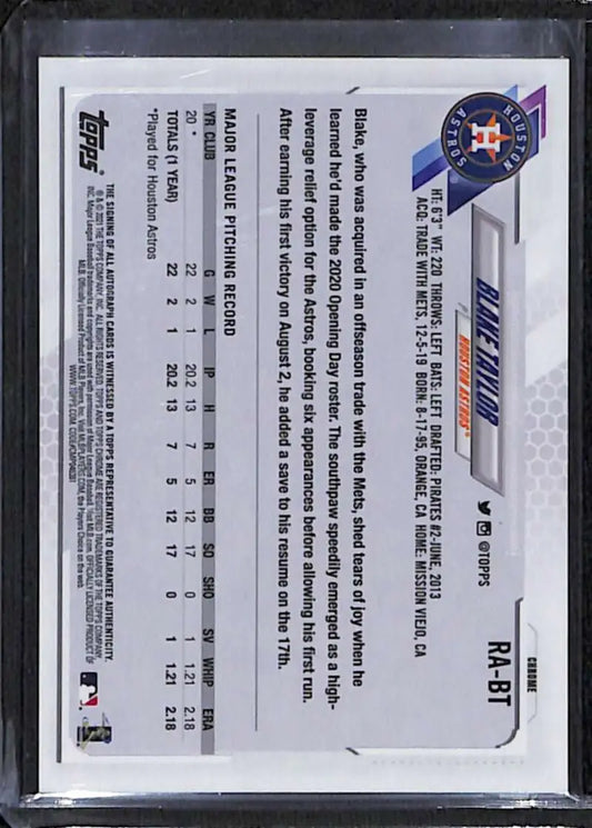 2021 Topps Chrome #RA-BT Blake Taylor Rookie Auto NM-MT Baseball Card