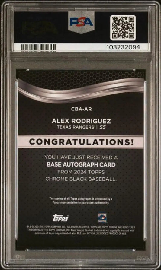 2024 Topps Chrome Black #CBA-AR Alex Rodriguez PSA 9 MINT Auto Texas Rangers Baseball Card