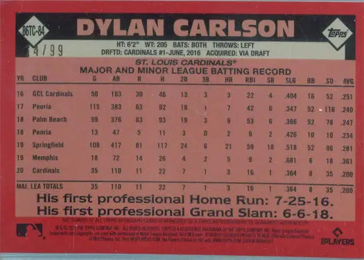 Topps Series Two Baseball 2021 Chrome Silver Auto Card 86TC-84 Dylan Carlson /99