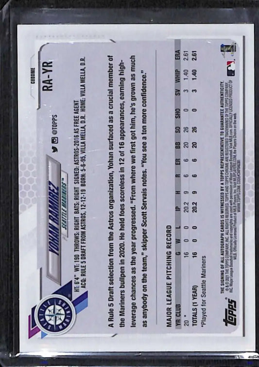 2021 Topps Chrome #RA-YR Yohan Ramirez Rookie Auto NM-MT Baseball Card