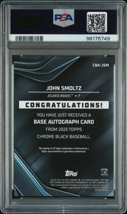 2023 Topps Chrome Black #CBA-JSM John Smoltz PSA 10 GEM MINT Auto Atlanta Braves Baseball Card