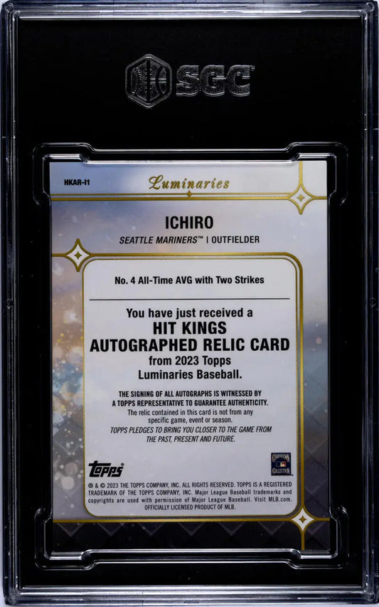 2023 Topps Luminaries #HKAR-I1 Ichiro Suzuki SGC 8 NM/MT MEM Auto 14/15 Seattle Mariners Baseball Card