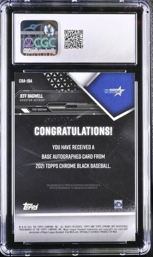 2021 Topps Chrome Black Green #CBAJBA Jeff Bagwell CGC 8 Auto 52/99 Houston Astros Baseball Card