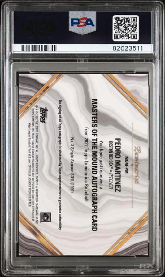 2022 Topps Luminaries #MOMPM Pedro Martinez PSA 9 MINT Auto 3/3 Boston Red Sox Baseball Card