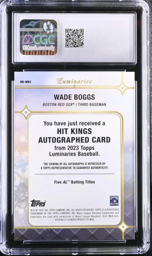 2023 Topps Luminaries #HKWB1 Wade Boggs CGC Gem Mint 10 Auto 6/15 Boston Red Sox Baseball Card