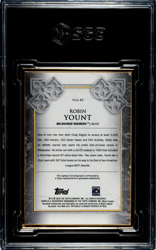 2023 Topps Transcendent #TCA-RY Robin Yount SGC 9 MINT Auto 11/20 Milwaukee Brewers Baseball Card