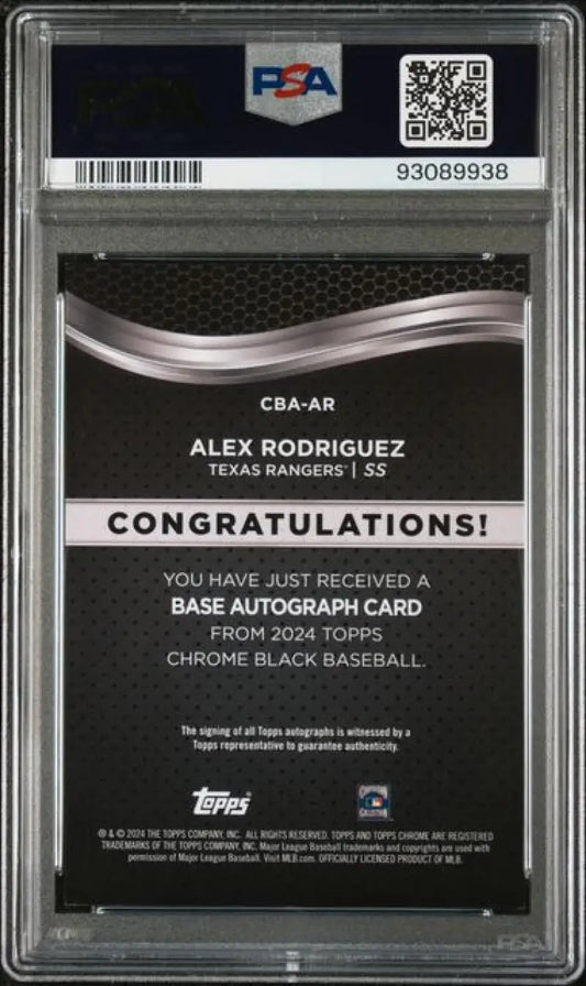 2024 Topps Chrome Black #CBA-AR Alex Rodriguez PSA 9 MINT Auto Texas Rangers Baseball Card