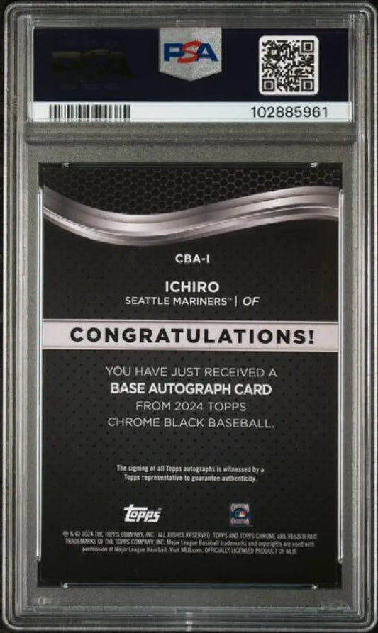2024 Topps Chrome Black Refractor Orange #CBA-I Ichiro PSA 9 MINT Auto 25/25 Seattle Mariners Baseball Card