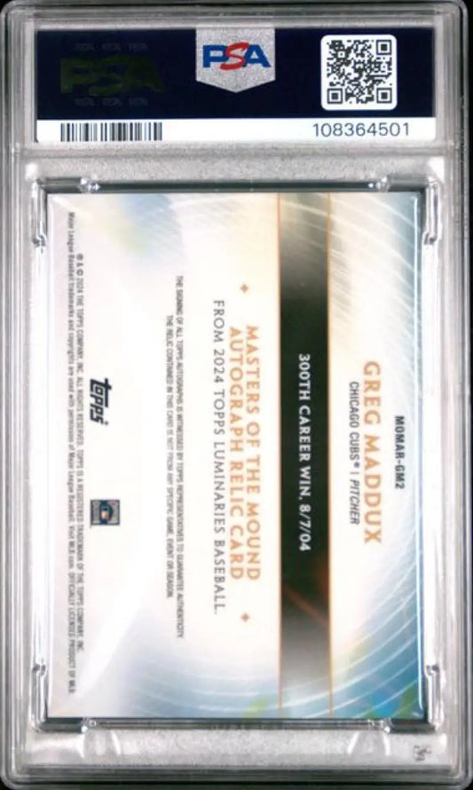 2024 Topps Luminaries #MOMARGM2 Greg Maddux PSA 9 MINT MEM Auto 13/25 Chicago Cubs Baseball Card
