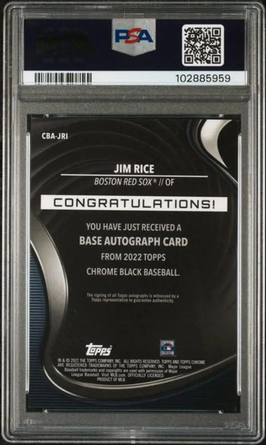 2022 Topps Chrome Black Refractor Gold Mini-Diamond #CBA-JRI Jim Rice PSA 9 MINT Auto 24/50 Boston Red Sox Baseball Card