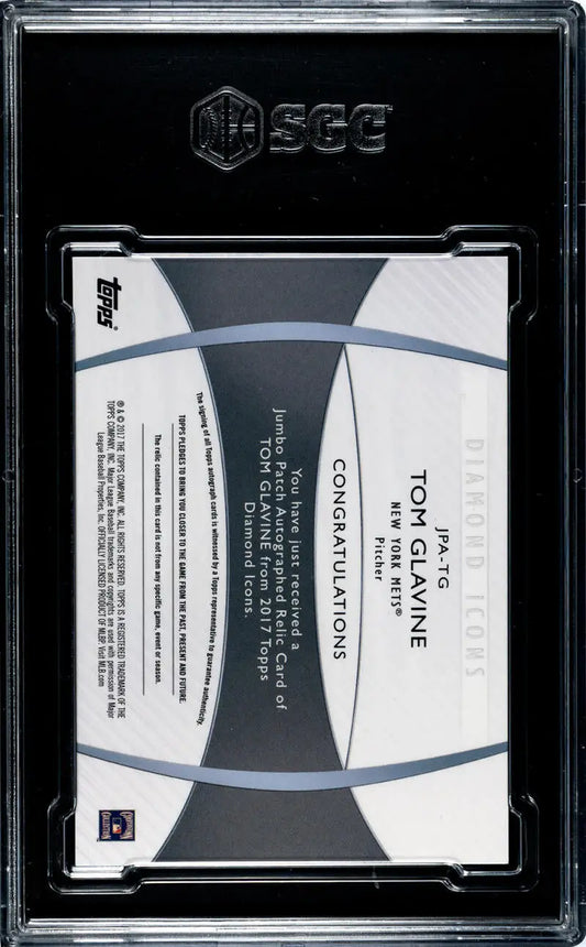 2017 Topps Diamond Icons Jumbo #JPA-TG Tom Glavine SGC 9.5 MINT+ MEM Auto 23/25 New York Mets Baseball Card