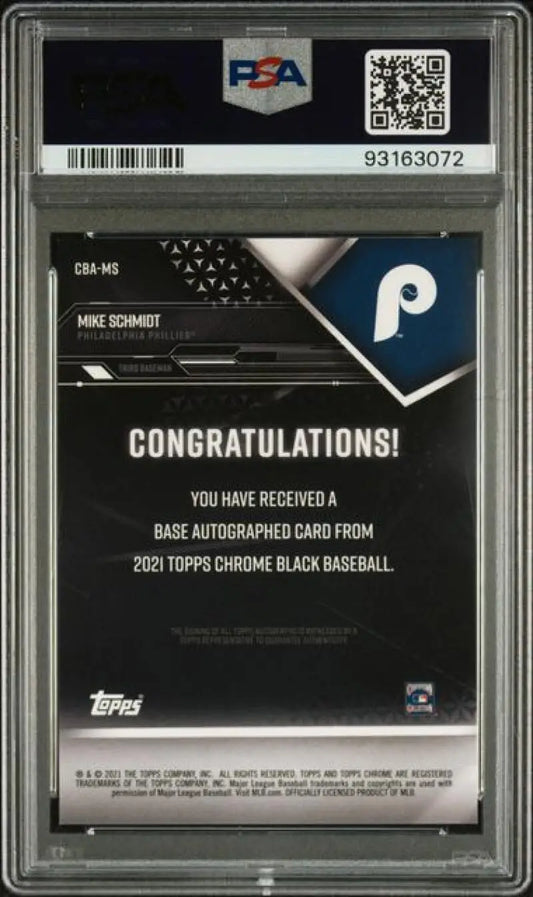 2021 Topps Chrome Black #CBA-MS Mike Schmidt PSA 10 GEM MINT Auto Philadelphia Phillies Baseball Card